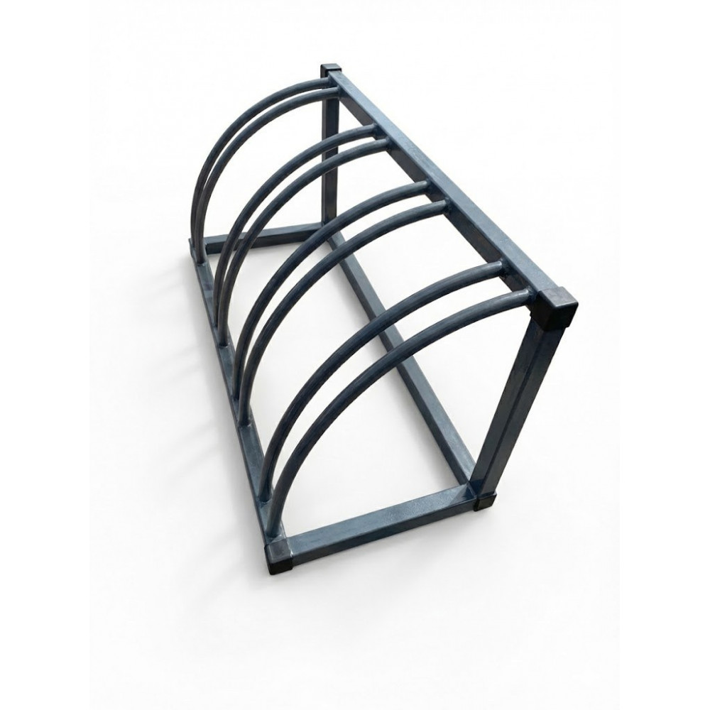 Велопарковка закруглённая на 4 места с размерами 110 см в длину, 45 см в ширину и высотой 45 см, весит 16 кг.